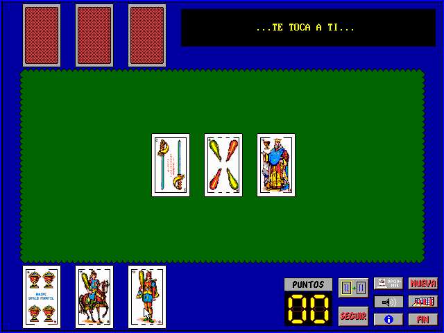 8, 9 y 10 respectivamente) hay ke sumar 15. Se reparten 3 cartas por