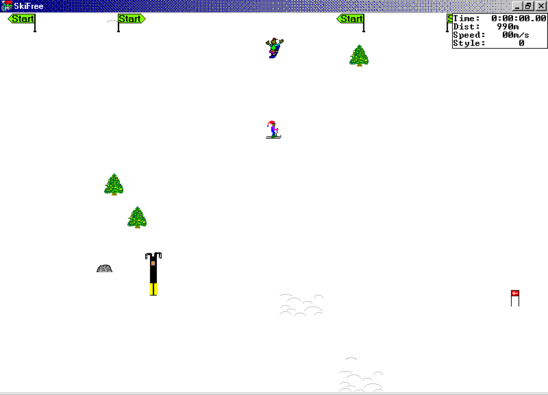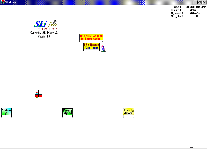 sencillito de ski, kontrolado kon el ratón (o el panel numériko) donde