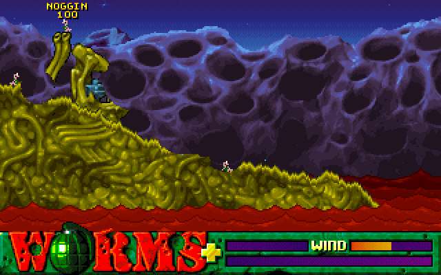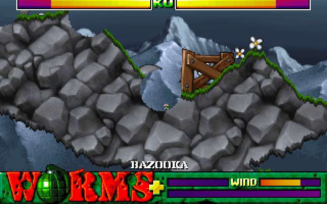 batallas entre 2 ekipos formados por kuatro gusanos, estos tienen