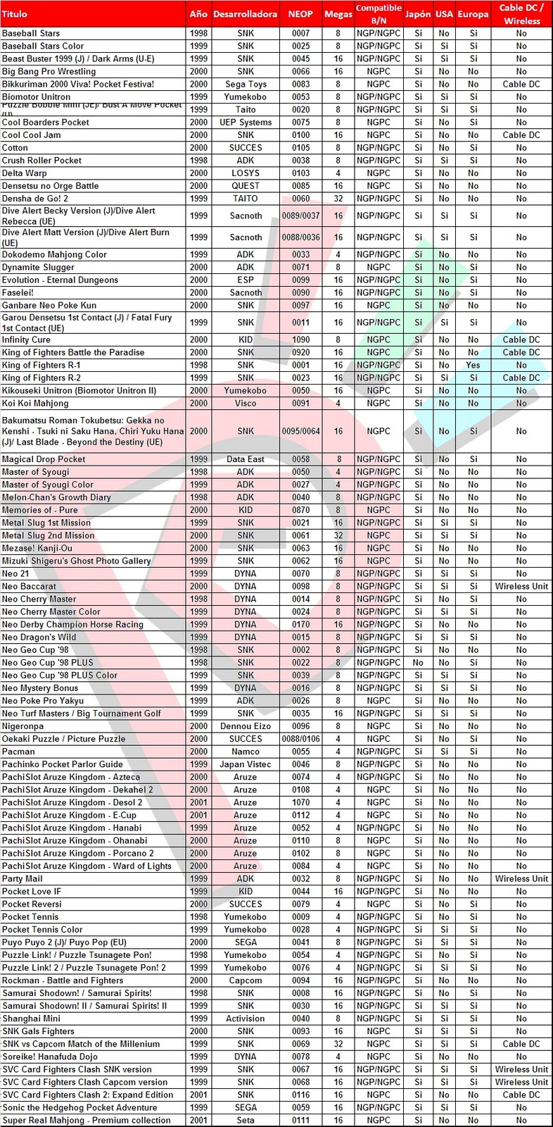 Pero esa lista es de la "Neo-Geo Pocket", una portatil vieja y de las tantas rivales que tuvo la "Gameboy"