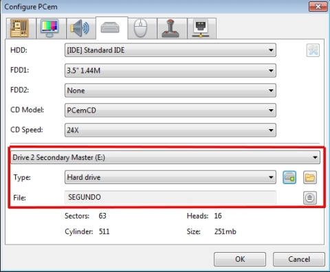 Seguramente la forma más fácil de jugar a cualquier cosa con este emu sea cargar juegos PC Booter, porque incluso parece que pilla el formato TeleDisk. Pero antes tendré que configurar una disquetera de 5 y 1/4 (se hace editando el INI) porque sino no me reconoce las imágenes de 360 Kb.