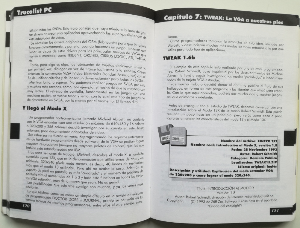 El Modo X es un modo de visualización no documentado de las tarjetas gráficas VGA que fue popularizado por los artículos de Michael Abrash para la revista Dr. Dobb's Journal. Posteriormente fueron publicados también en los capítulos 47-49 del Graphics Programming Black Book (disponible gratuitamente en formato PDF.El Modo X requiere modificar el Modo 13h estándar de 256 colores de manera que toda la memoria de vídeo esté disponible en un formato planar, lo que tiene el coste añadido de aumentar la complejidad de las escrituras a memoria. No obstante, para muchos programadores este coste extra merece la pena, ya que la memoria de vídeo extra hace posible producir juegos en 2D o demos de alta calidad, que es para lo que se usaba principalmente este modo.