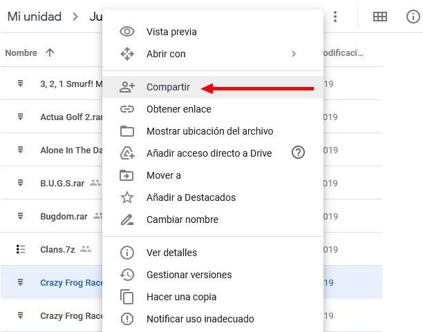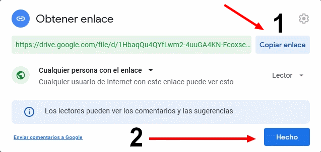 Yo los paso que hago para compartir desde Google Drive son los que pongo a continuacion y hasta ahora no tuve ningun problema: